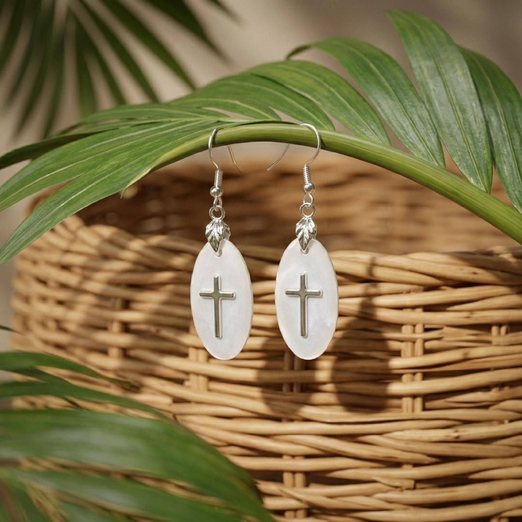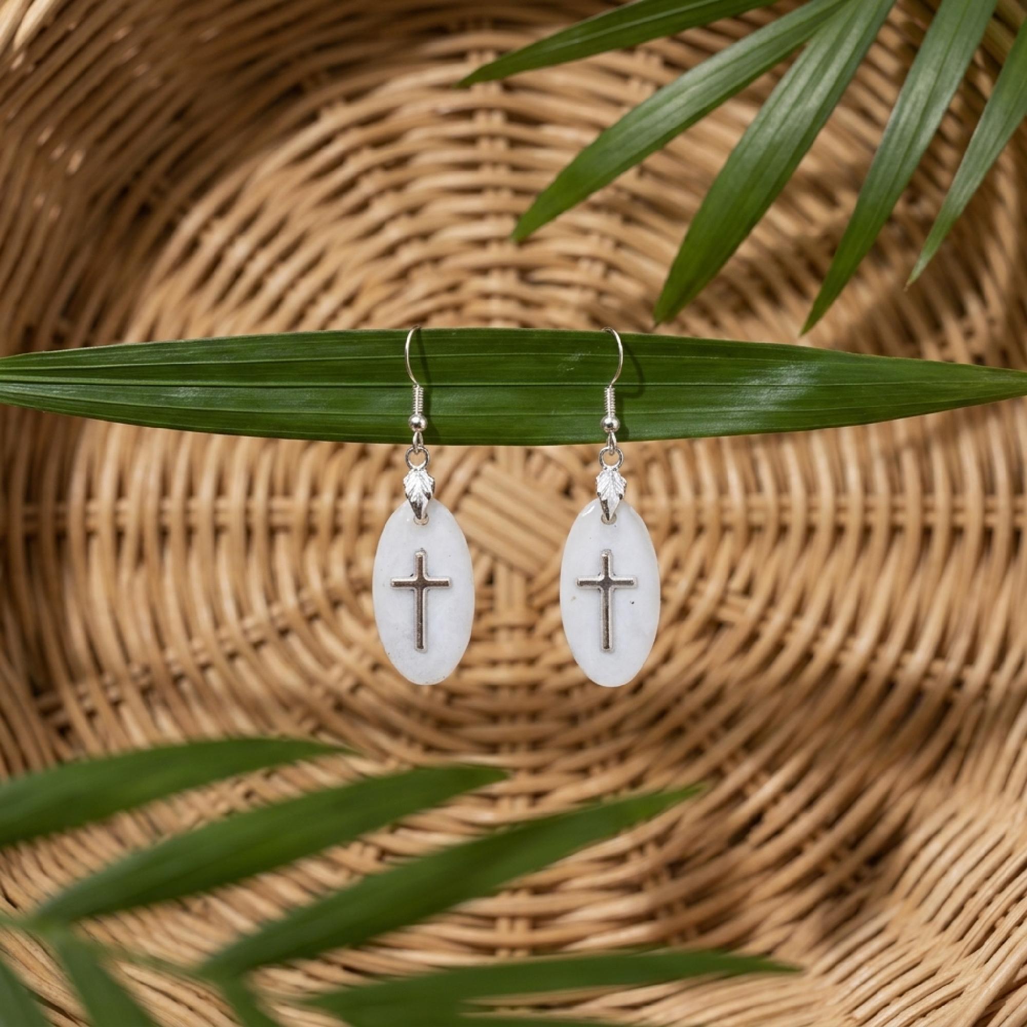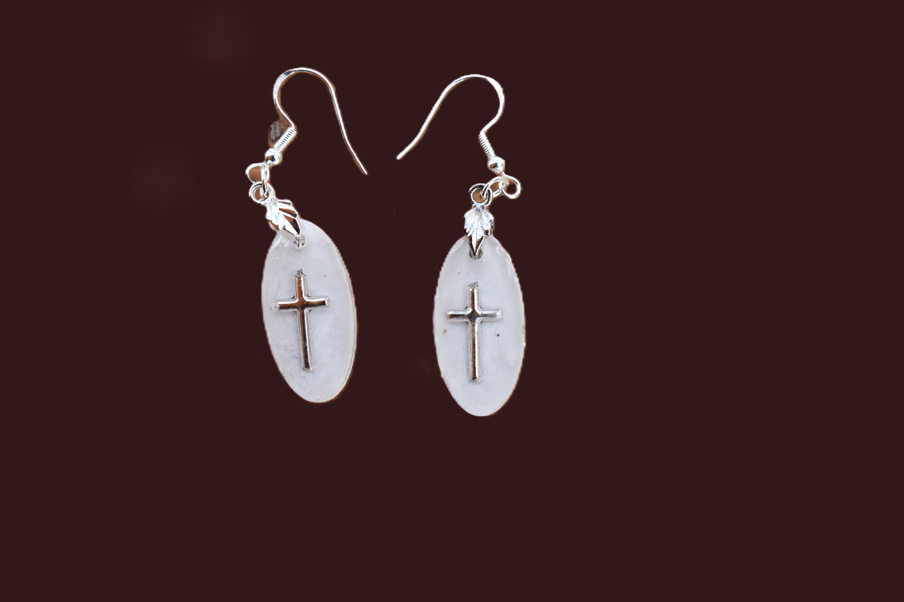 The clear, oval pendants frame a delicate cross charm resin detail that catches the light from every angle. These dainty cross drops swing gently from silver hooks, giving you a soft christian dangle that feels elegant yet easy to wear.