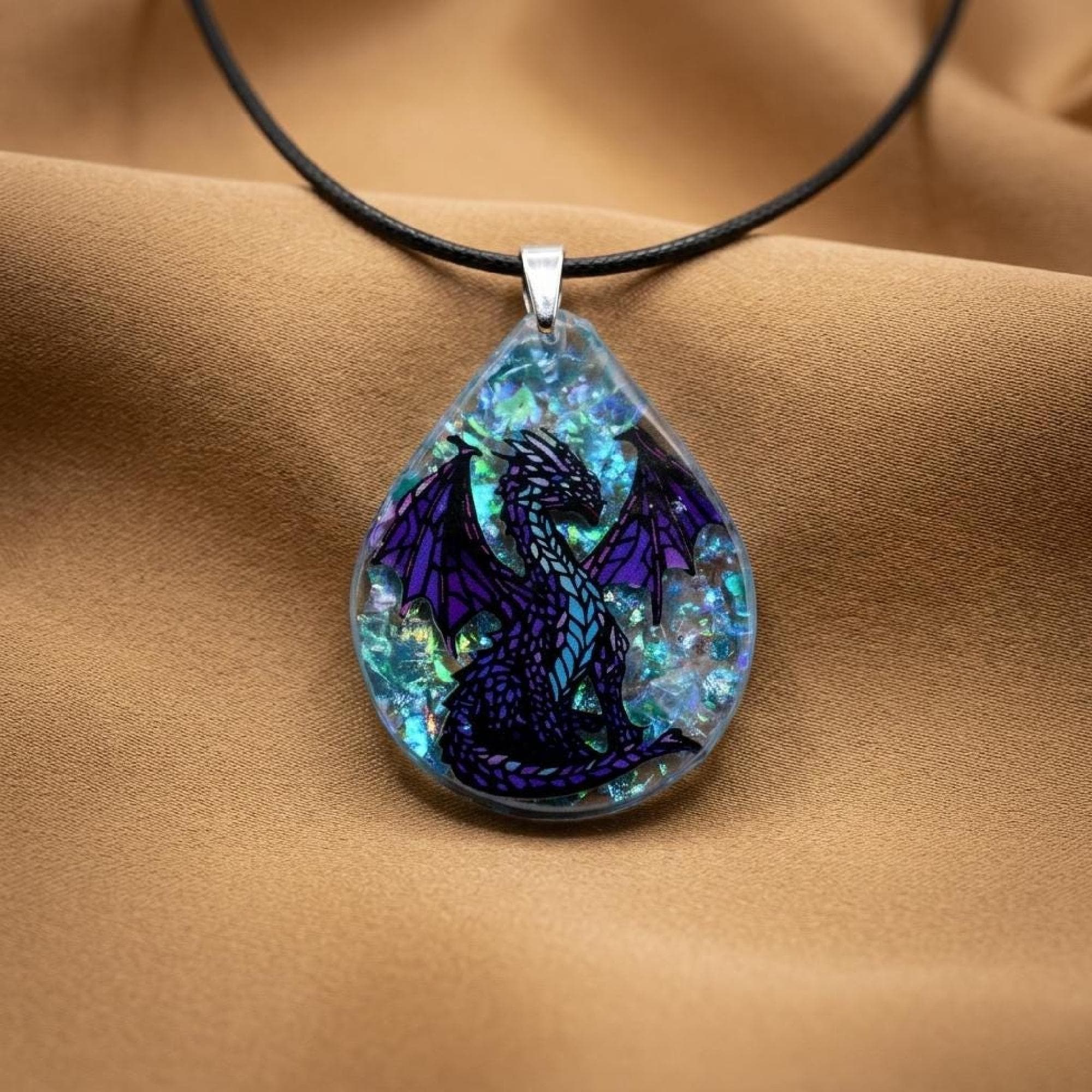 Every dragon pendant is carefully poured, inked, and finished by hand, so you receive a truly handmade dragon treasure rather than a mass produced trinket. If you are looking for fantasy jewelry that feels personal and magical at the same time, this dragon necklace is made for you.Discover a unique touch to your accessory collection with this handcrafted resin art necklace. The pendant showcases a delicately moulded design that captures light and attention, suspended gracefully from a black cord that adds a hint of subtle elegance. Unbranded and distinctive, this piece marries modern creativity with classic charm, making it a versatile addition to both casual and formal ensembles. Whether as a thoughtful gift or a treat for yourself, this necklace is a versatile statement piece that embodies individual style and artisanal craftsmanship.