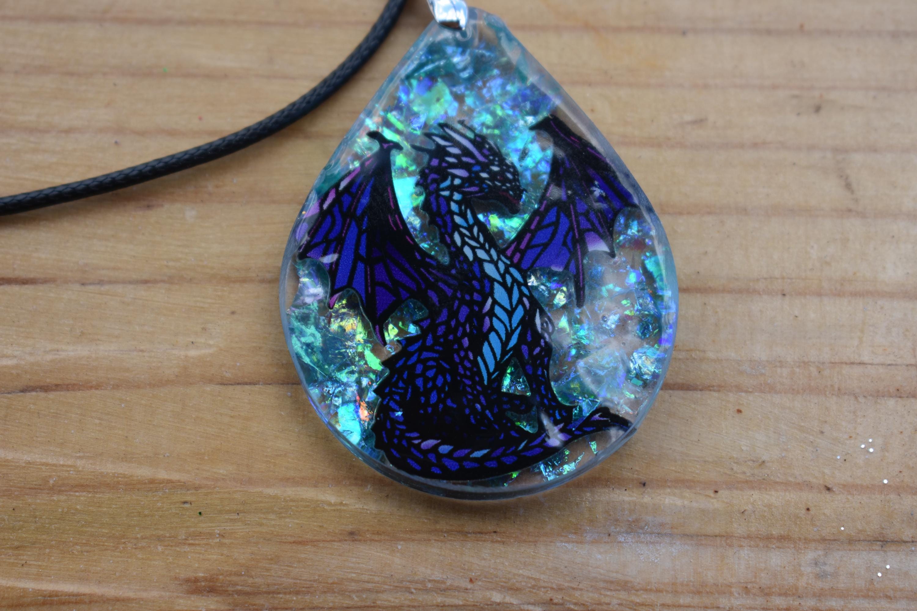 Bring a bit of magic to your everyday look with this hand made dragon necklace, created from crystal clear UV resin and rich color inks. At the center is a handmade dragon captured inside a smooth teardrop necklace shape, so it feels like a tiny scene frozen in time.