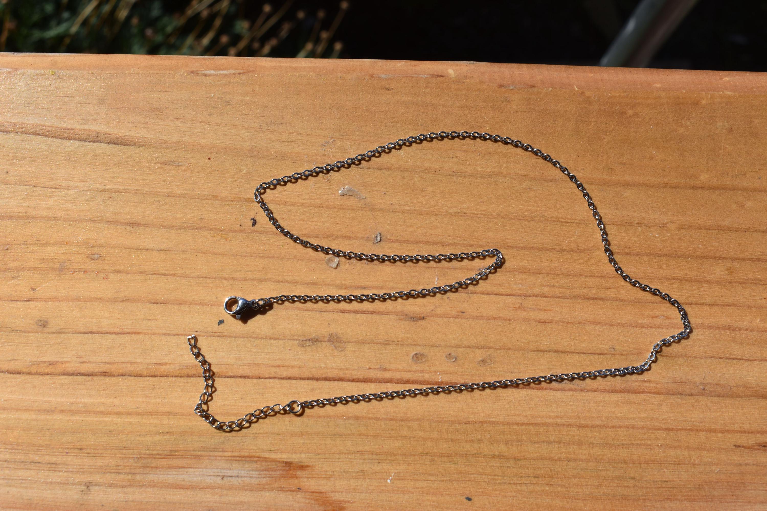 You can choose how you want to wear it: a simple black cord necklace for a casual, everyday look, or a stainless chain if you want it to feel a bit more polished. Either way, it sits comfortably and works with a T shirt or a dress.